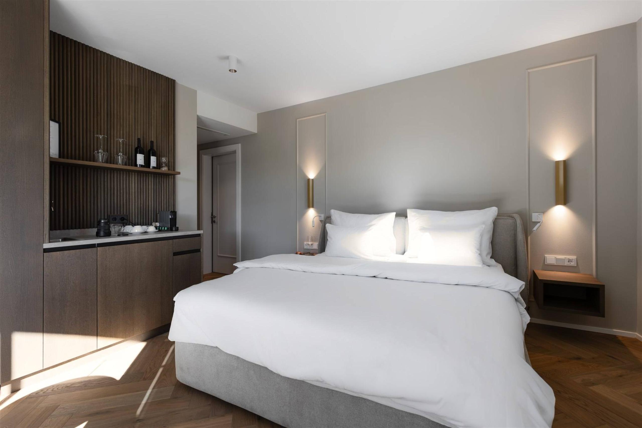 The rooms have a fridge-freezer, glasses and crockery, a make-up table with mirror, and a bathroom with rain shower, hairdryer, and selected toiletries. Linger’s best wines await you in the minibar (at an extra charge). Some rooms are wheelchair accessible. All rooms are non-smoking.